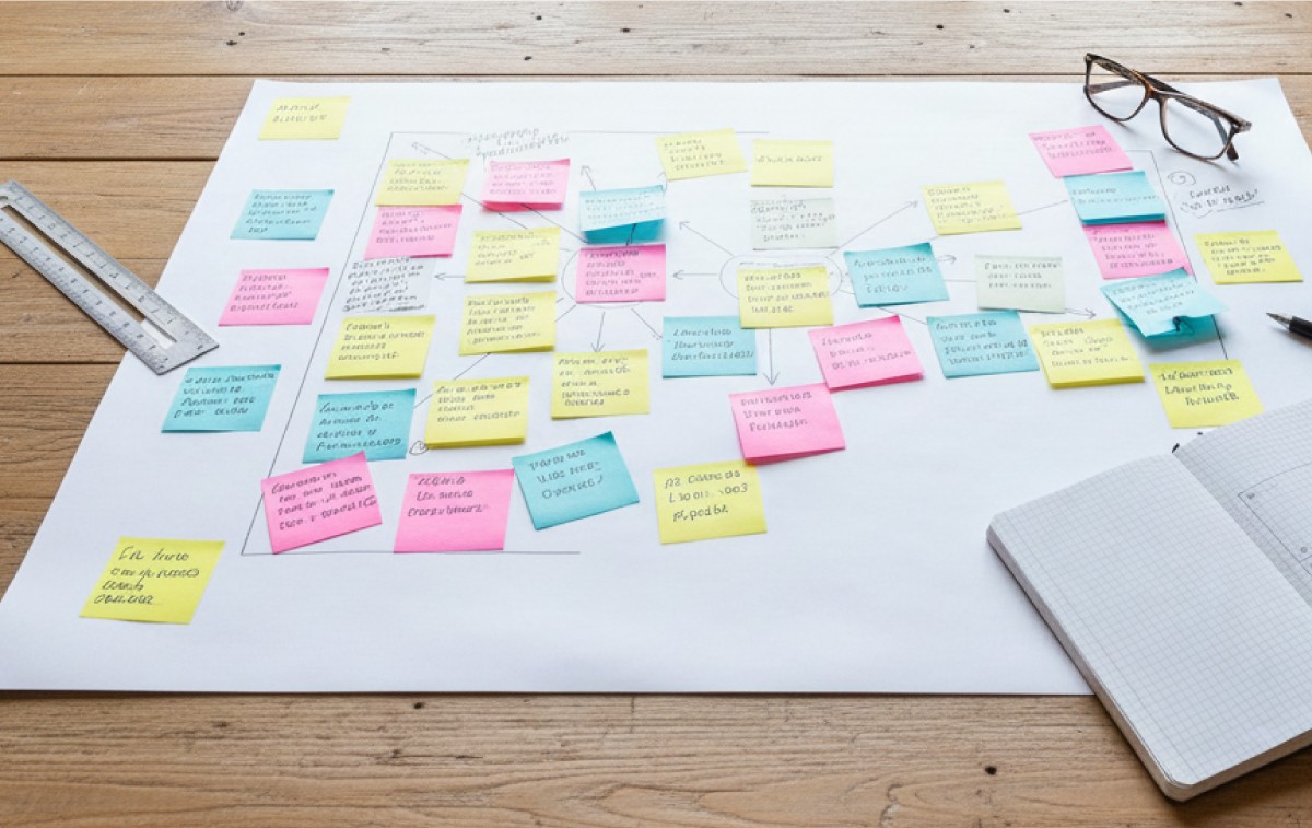 Analizo el núcleo de tu visión para transformar ideas en una hoja de ruta clara. Definimos el propósito y las metas reales antes de trazar el primer píxel.